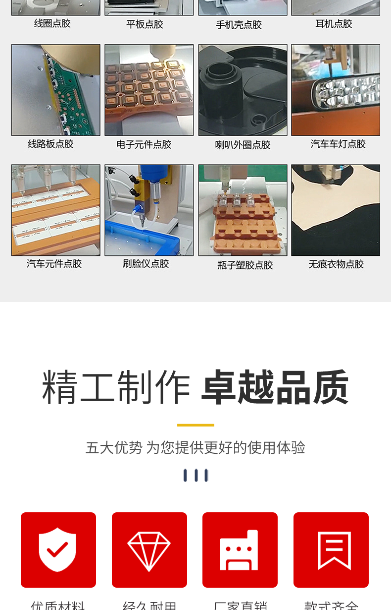 取代人工特點(diǎn)的點(diǎn)膠作業(yè),實(shí)現(xiàn)機(jī)械化生產(chǎn) 。